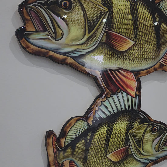Our digital paintings of Redfin Perch are printed on high-quality archival paper, ensuring a long-lasting piece that will not yellow. They are mounted on sturdy wood and sealed with UV stable epoxy resin.