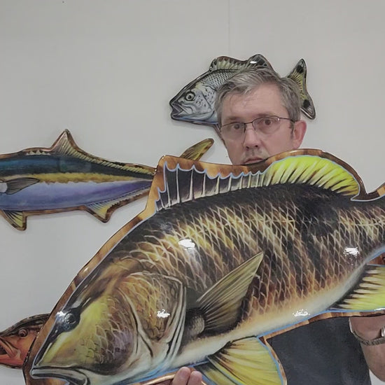 Experience the premium quality of our Spot Tail Bass Print mounts on durable wood and sealed with UV stable epoxy resin.